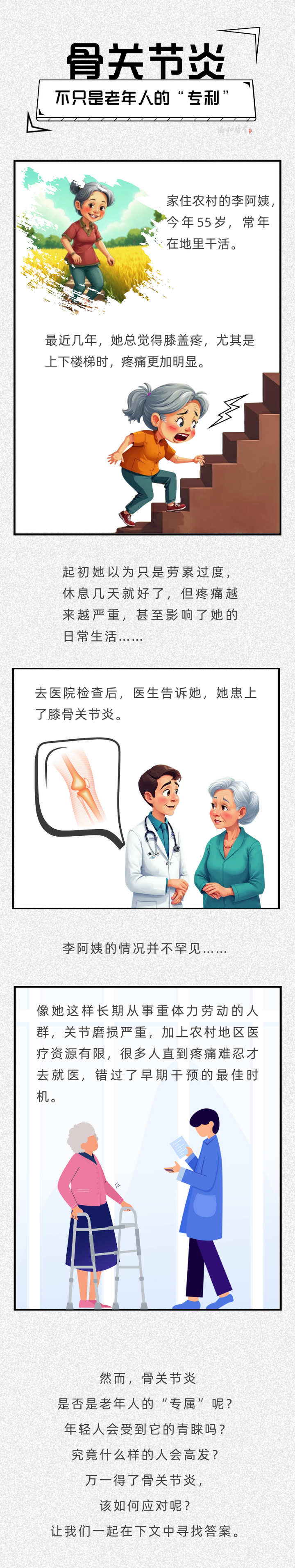 农村与山区居民:长期从事重体力劳动的人群,尤其是农村和山区的居民,骨关节炎的患病风险更高。西南山区是我国膝骨关节炎疾病负担最重的地区,这与当地的地形和劳动方式密切相关。