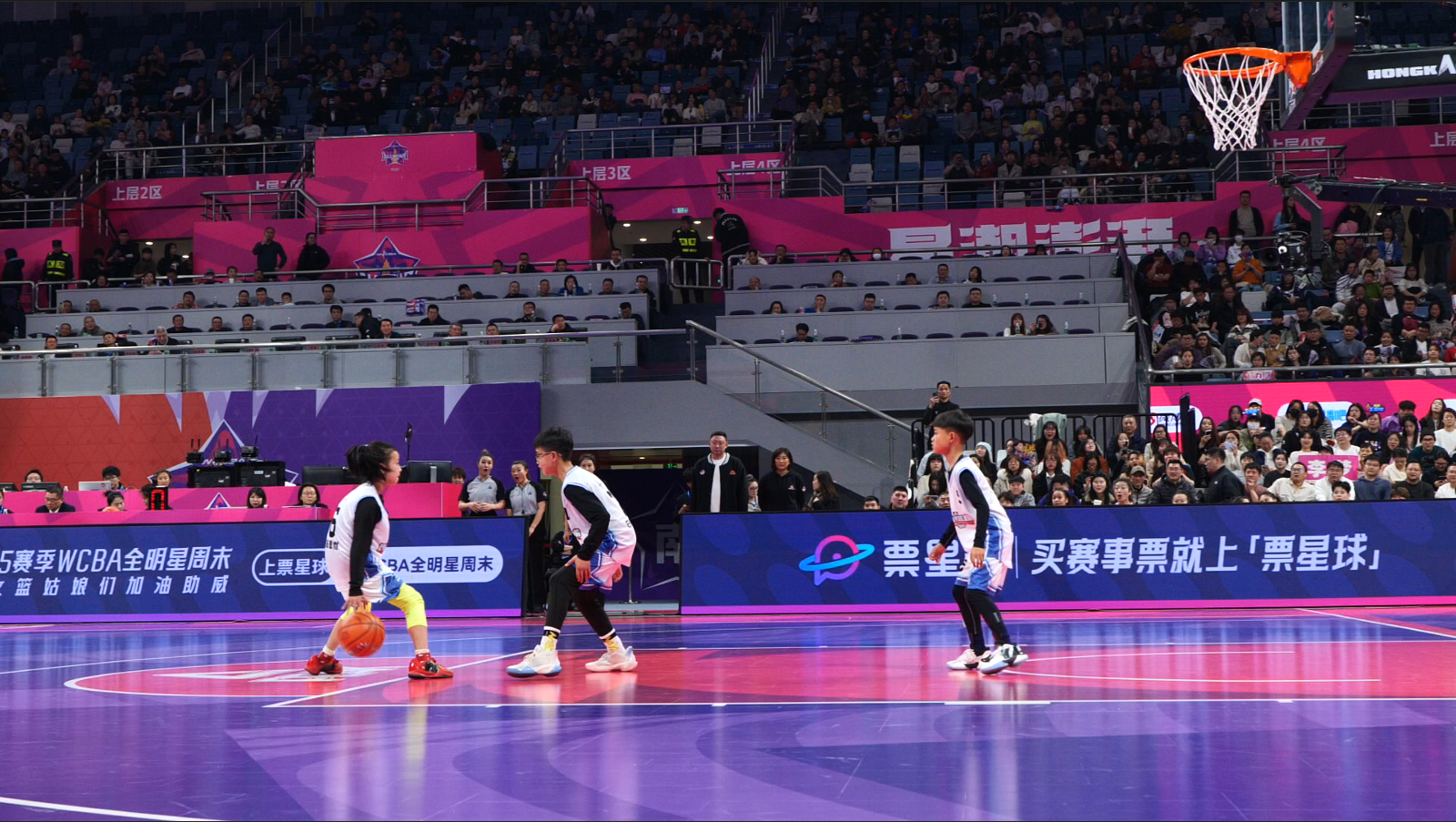 2月23日,WCBA全明星赛在杭州黄龙体育场上演。在比赛第三节结束后的互动环节,三位来自四川省青川县的篮球少年——陈思燃、辜禹乐、白乐轩,以出色的表现赢得了现场观众的热烈掌声,并获得了李梦、韩旭、杨舒予等明星球员的高度认可和鼓励。
