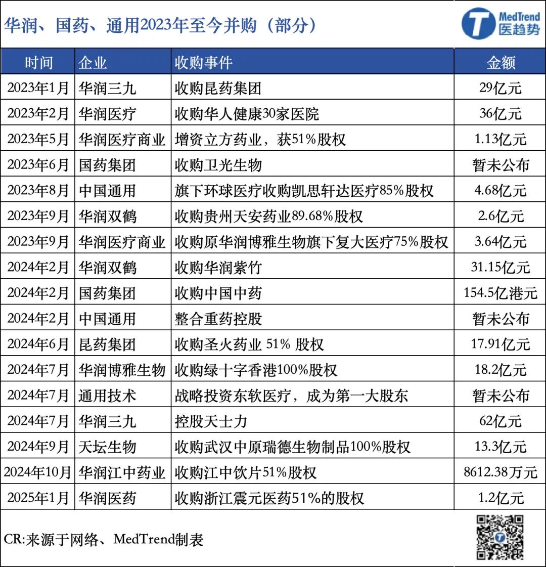 不仅如此,2025年1月,国药集团召开2025年度工作会暨二届一次职代会,党委书记、董事长白忠泉强调了2025年国药集团的总体工作要求,包括“要加强并购整合”。