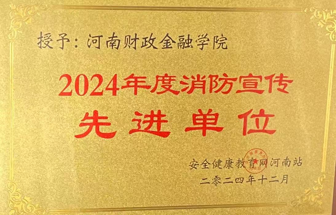 河南财政金融学院荣获中国安全健康教育网“2024年度消防宣传先进单位”