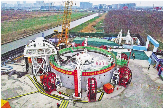 (2月12日,浙江大有集团承接的杭州临平S304省道320国道段至运溪路的电力管廊二期工程M5井竖向掘进正式始发施工。 丁豪 摄)