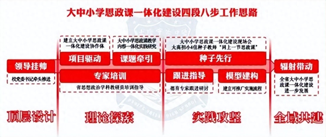 ▲大中小学思政课一体化建设“四段八部”工作思路