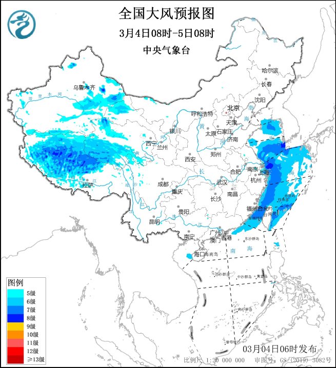 全国大风预报图。图源/中央气象台