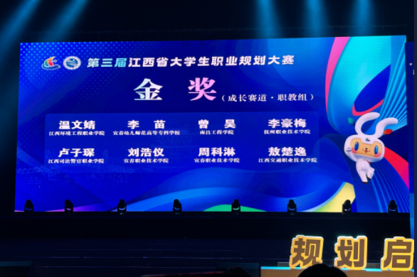 3 月 4 日,第三届江西省大学生职业规划大赛省赛决赛在南昌工程学院圆满落下帷幕。来自全省各高校的 200 余名选手同场竞技,展开激烈角逐。宜春职业技术学院的 5 名参赛选手凭借扎实的专业素养、清晰的职业规划思路和卓越的现场表现脱颖而出,在大赛中斩获职教组 3 金 2 银的优异成绩,充分展示了宜职学子的非凡实力与独特风采。