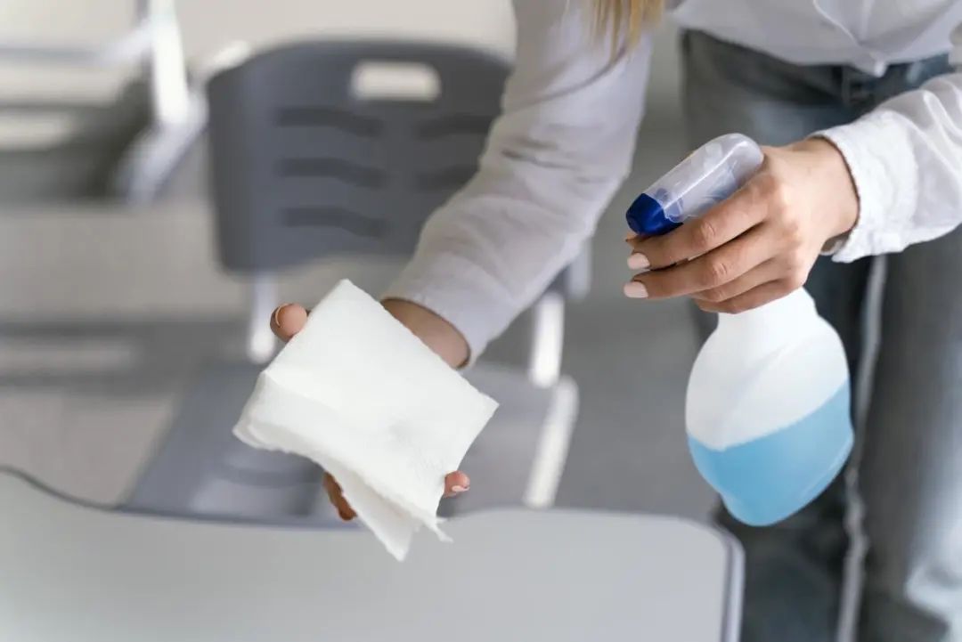 ②采用湿墩布拖地、湿抹布擦拭等湿式清理灰尘的方法,保持室内清洁干净,避免室内尘土的再悬浮。