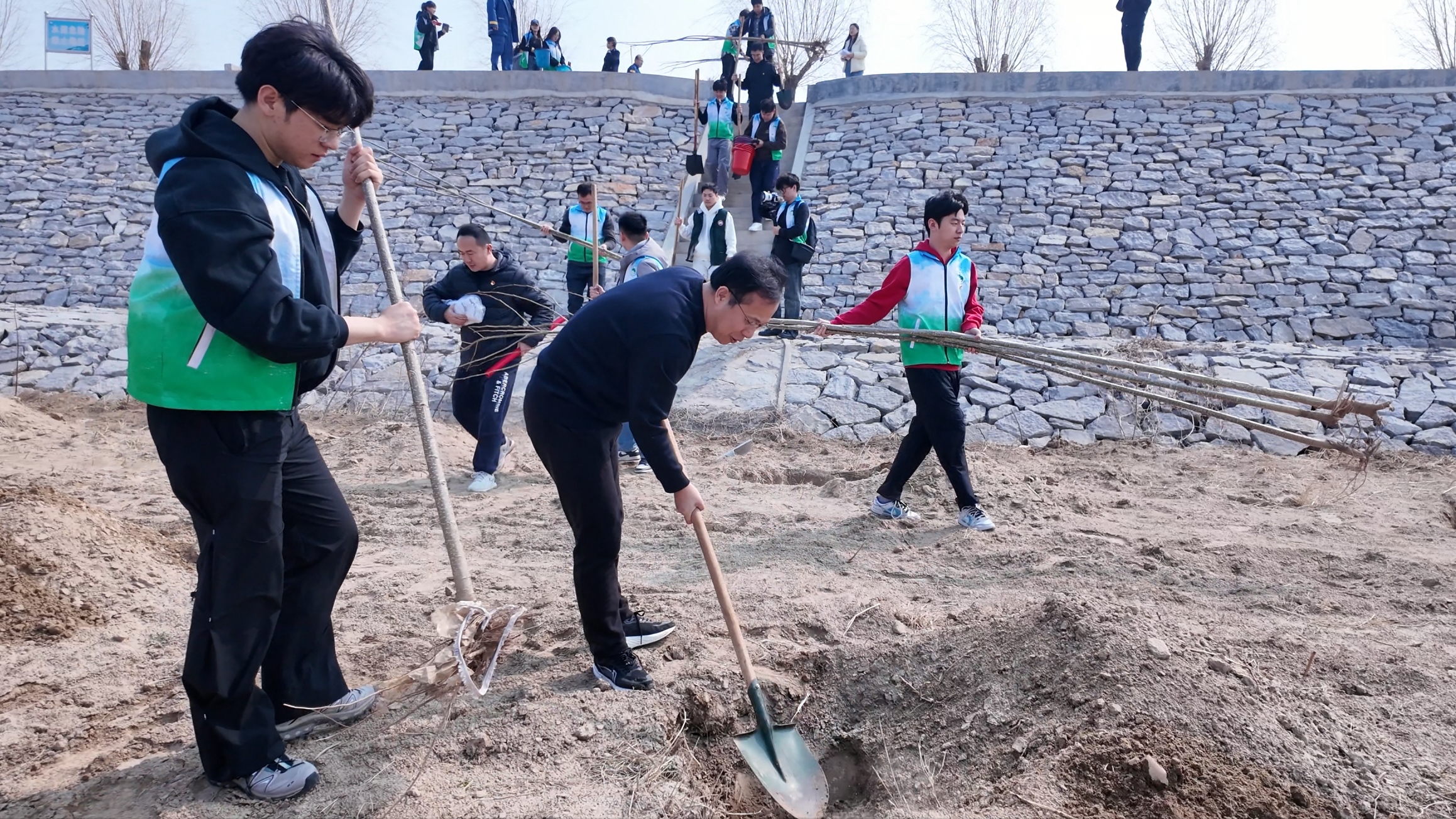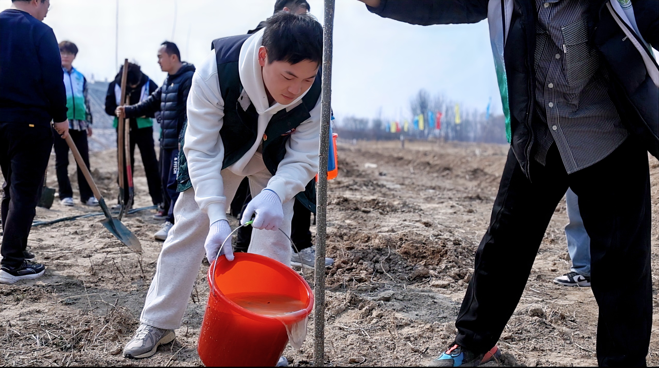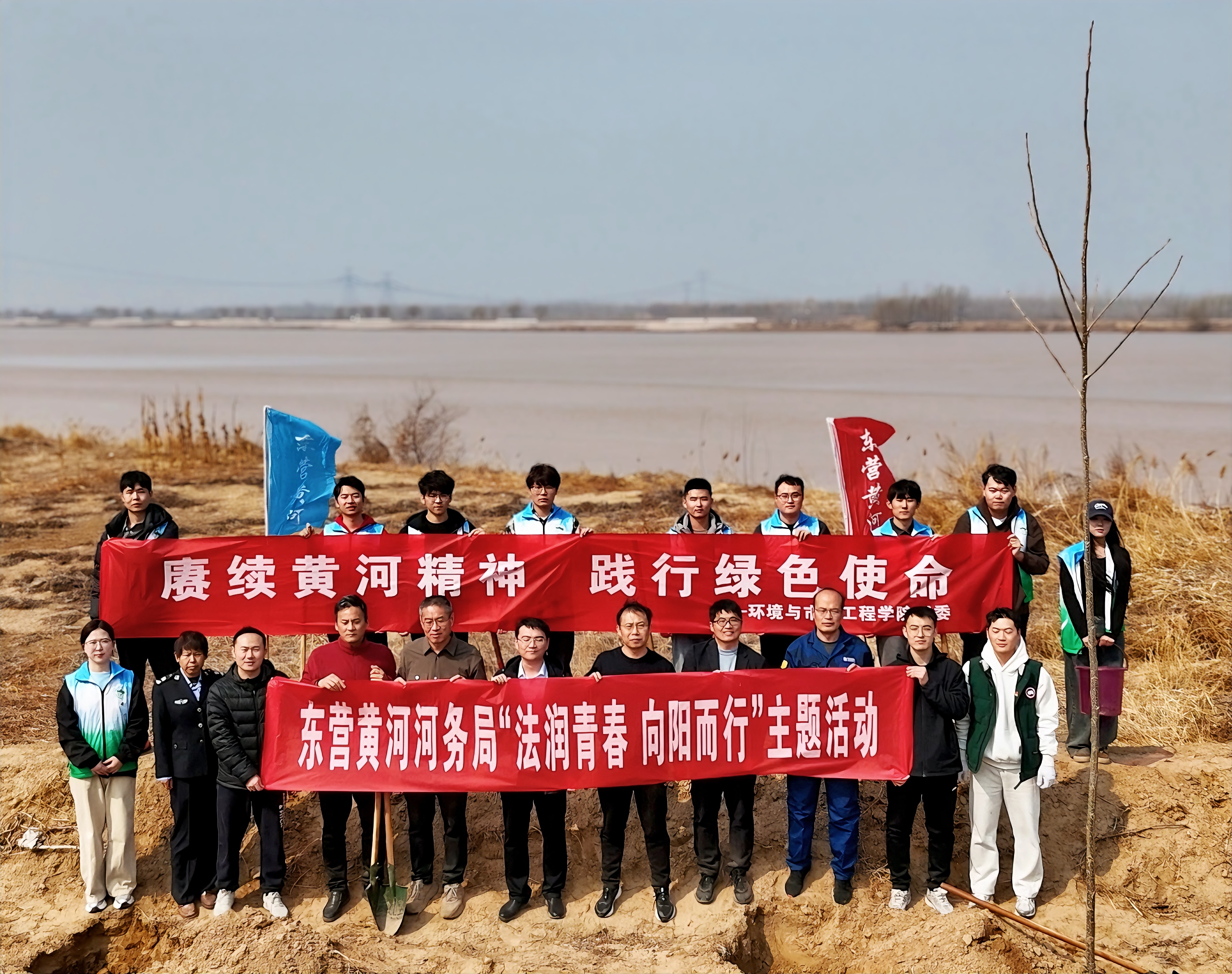 “在栽树苗之前要回填20到30厘米的熟土,栽植后充分浇水,以帮助树苗更好地吸收水分和营养……”东营黄河河务局麻湾管理段段长李兆杰正在给青岛理工大学师生讲解植树要领。在第47个植树节来临之际,青岛理工大学环境与市政工程学院组织师生到山东省东营市黄河河务局麻湾管理段沿岸,挥锹培土、扶苗浇水,共同栽种“红色传承林”,打造“可追溯、共守护”的黄河流域生态教育基地。