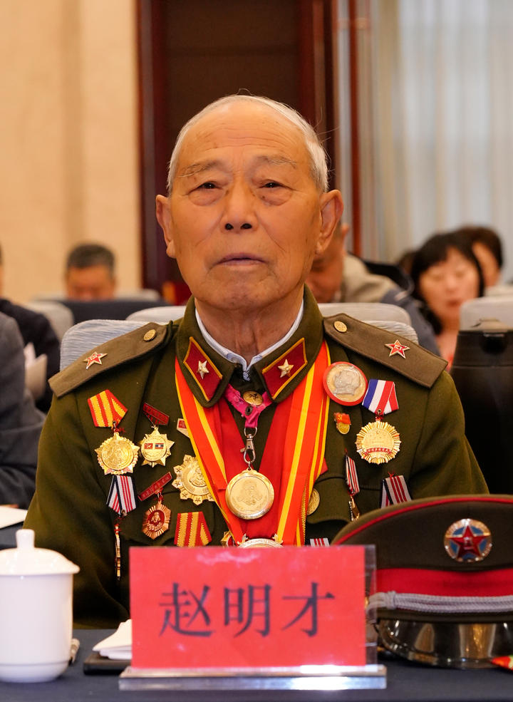 (90岁的全国模范退役军人赵明才出席活动)