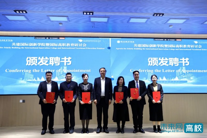 陕西国际商贸学院执行校长贾明远宣读了国际创新学院合作办学理事会成员名单。赵超为理事会成员颁发聘书。