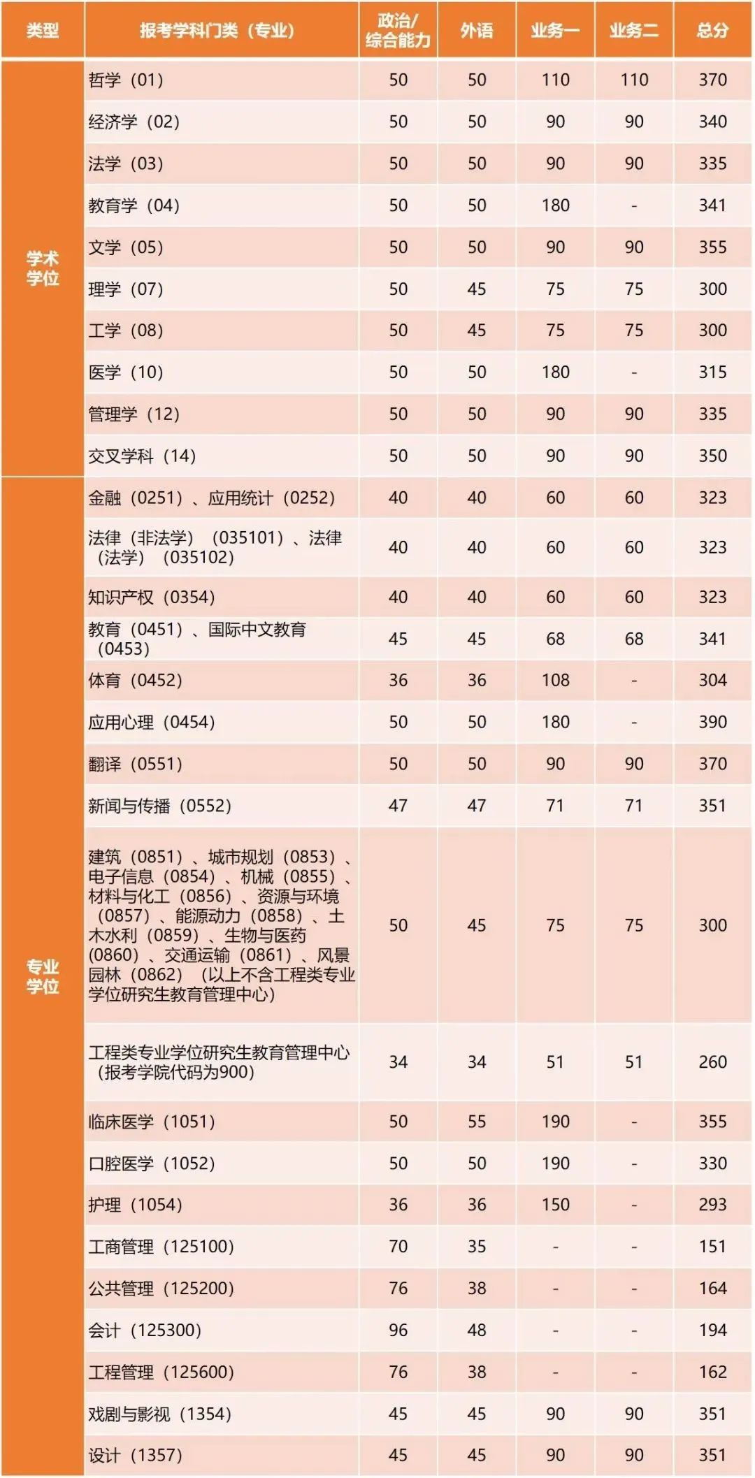 二、专业学位初试成绩基本要求(不含上海医学院)