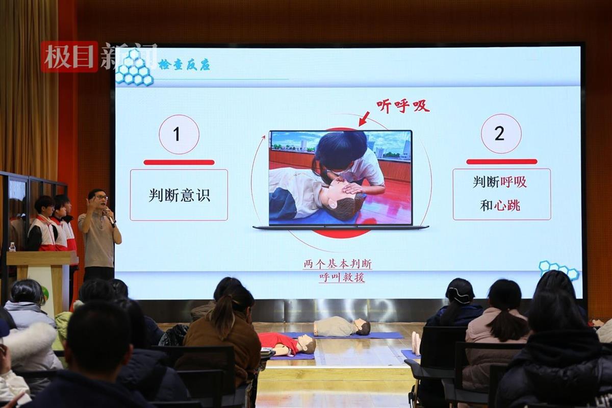 志愿服务队给晨曦幼儿园老师讲解如何做心肺复苏
