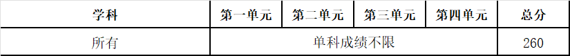 单科及总分均不低于对应统考门类(专业)学校分数线。
