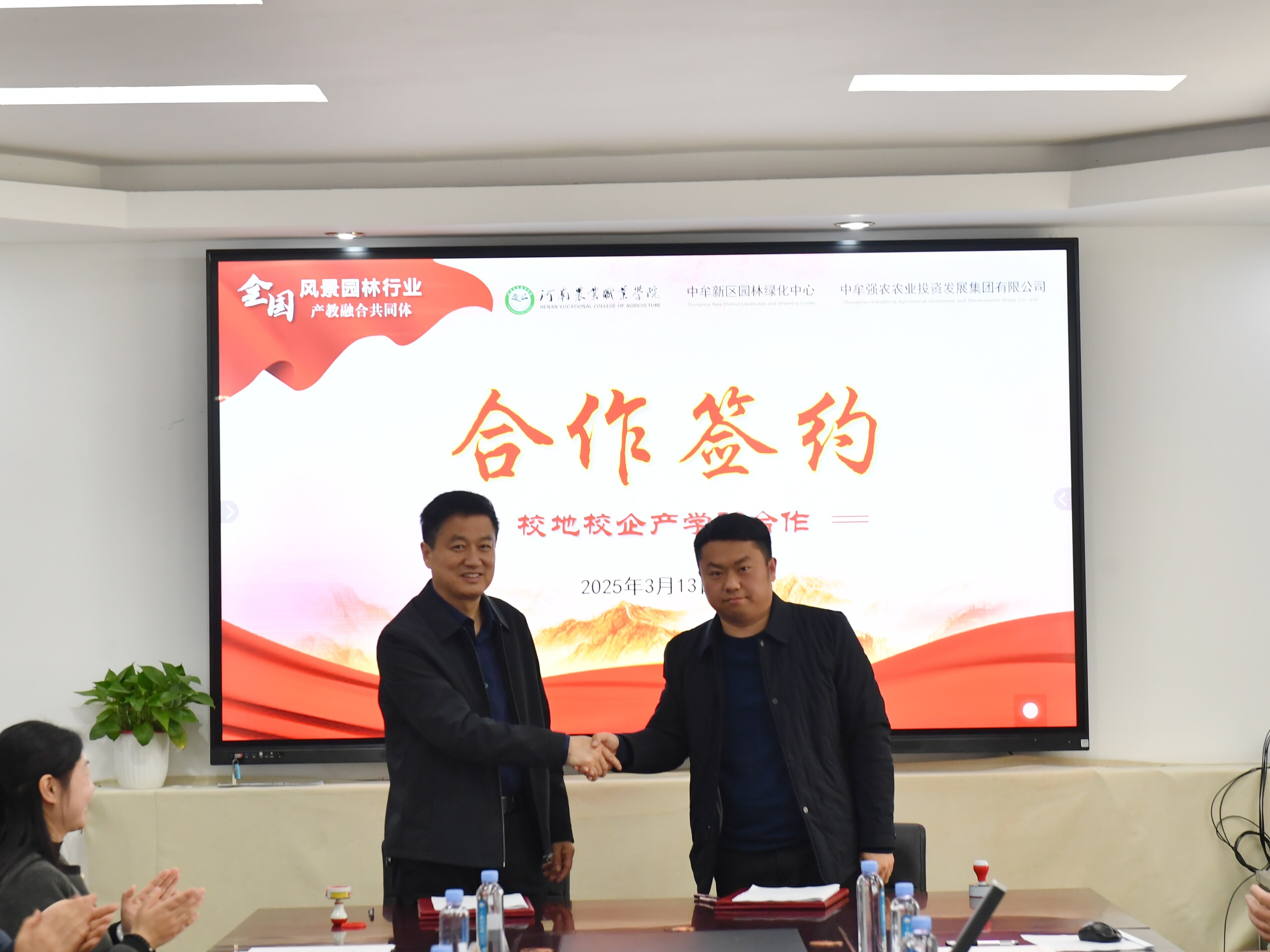 3月13日,河南农业职业学院举办了政校企合作签约交流会,河南农业职业学院、中牟新区园林绿化中心、中牟强农农业投资发展集团有限公司三方代表齐聚一堂,在全国风景园林行业产教融合共同体的引领下开启合作新征程。本次交流会由园林工程学院党总支书记常启海主持。