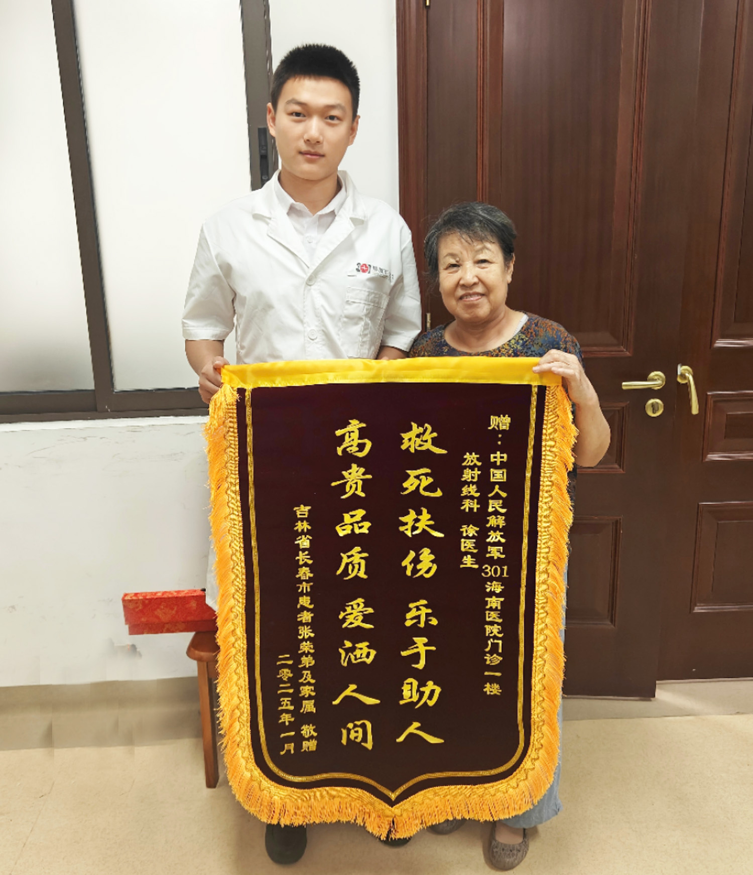 时隔月余,当徐宝杰都已淡忘此事时,一面绣着“救死扶伤乐于助人 高贵品质爱洒人间”的锦旗突然被送到了他所在的放射科。原来,出院后的老先生始终对徐宝杰的帮助念念不忘,特意定制锦旗以表谢意。收到锦旗的徐宝杰表示:“这面锦旗既是对我工作的肯定,更是一份鼓励和鞭策。救死扶伤是医护人员的天职,能得到患者的认可,我深感荣光!”