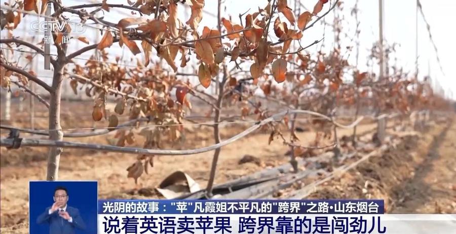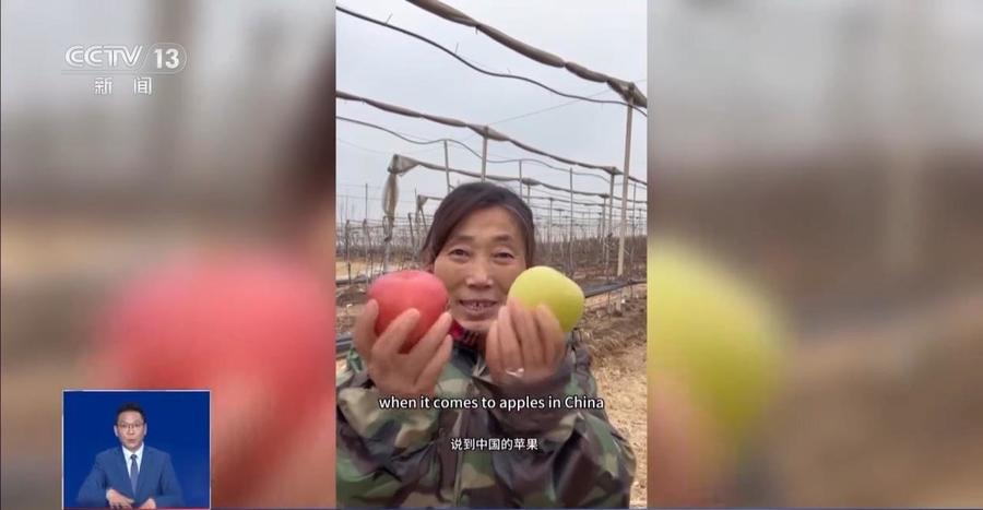 大年初二,李晓霞手捧两个苹果,站在镜头前,用流利的英语介绍起自家种植的苹果。