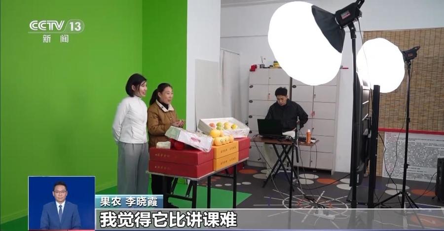 果农 李晓霞:一开始直播的时候,我觉得它比讲课难,因为讲课可以提前备课,和学生有一个眼神的交流。我一开始直播有点小紧张的,有时候嘴就有点瓢了,或者发音不准确。