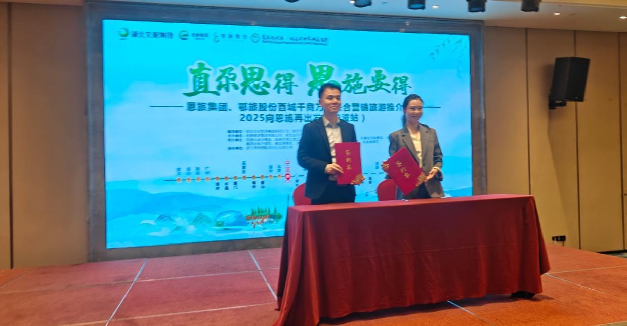 随着“宁波-恩施”2小时直飞航线进入倒计时,3月17日,湖北恩旅集团、鄂旅股份携大批恩施“神仙景点”组团空降宁波,举办2025年“百城千商万店”联合推介会。
