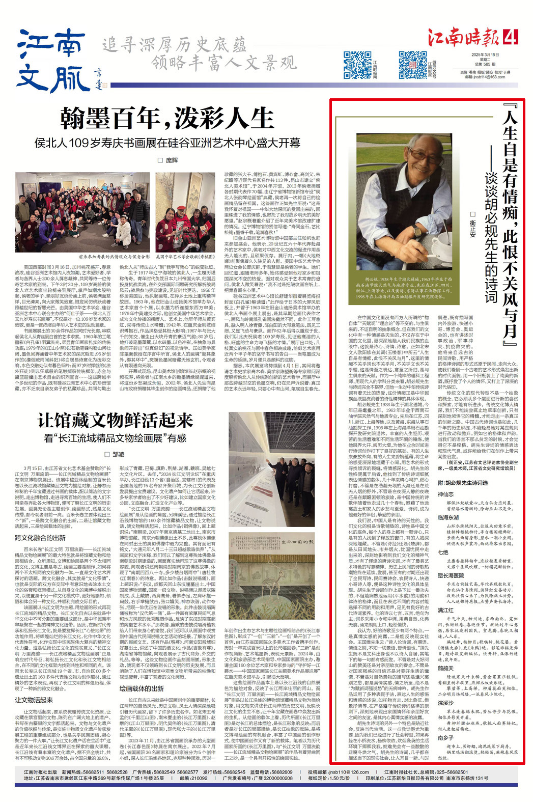 传统文化的现代转型不是一个抽象的概念,它必须从多个层面进行新的尝试和探索,才能有所进步。传统文化博大精深,我们不能浅尝辄止地草率创新,只有深刻地领悟它的精髓,才能走出一条真正的创新之路。中国古代诗词也是如此,几千年的历史积淀,不能轻易地对某些规则进行改动和抛弃,例如它的格律和声韵,当我们的语言不那么贫乏的时候,才会觉得它不是桎梏。胡先生诗词的情感表达和现代气息,或许能给我们在创作上带来某些启发。
