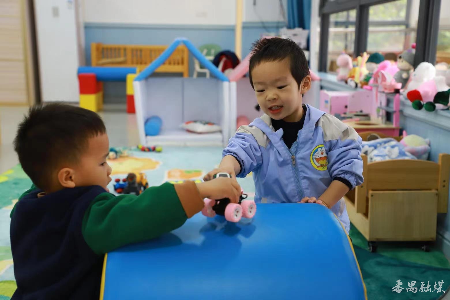当日揭牌的番禺区托育综合服务中心位于广东女子职业技术学院番禺附属幼儿园内,首批开设2个托育班,面向0-3岁婴幼儿提供普惠服务,每班托位20个,配备2名专职幼师及1名保育人员,有效缓解双职工家庭育儿压力。记者在现场看到,中心以“适童化设计”为核心,打造自然环保的成长空间:室内划分活动室、绘本阅读区、营养配餐间等功能区域,地面与墙角均采用防撞软包材料,定制符合幼儿身高的洗手台、马桶及扶手设施,细节处彰显安全关怀。整体环境以明亮温馨的色调为主,兼具趣味性与教育性,为婴幼儿量身定制“成长乐园”。通过整合妇幼保健院专业医疗指导与幼儿园科学养育经验,该中心实现了健康监测、早期发展及生活照护的有机融合,构建起“医育双护”的安心托育模式。中心汇聚多方优势资源,以数字化赋能托育服务,围绕婴幼儿照护实训、托育人才培养、医育结合实践,研发AI实训平台,通过AI自动采集学员实操数据、动态监测分析核心操作指标,实现托育服务流程的数字化建模与精准化干预,推动托育服务标准化、规范化发展。