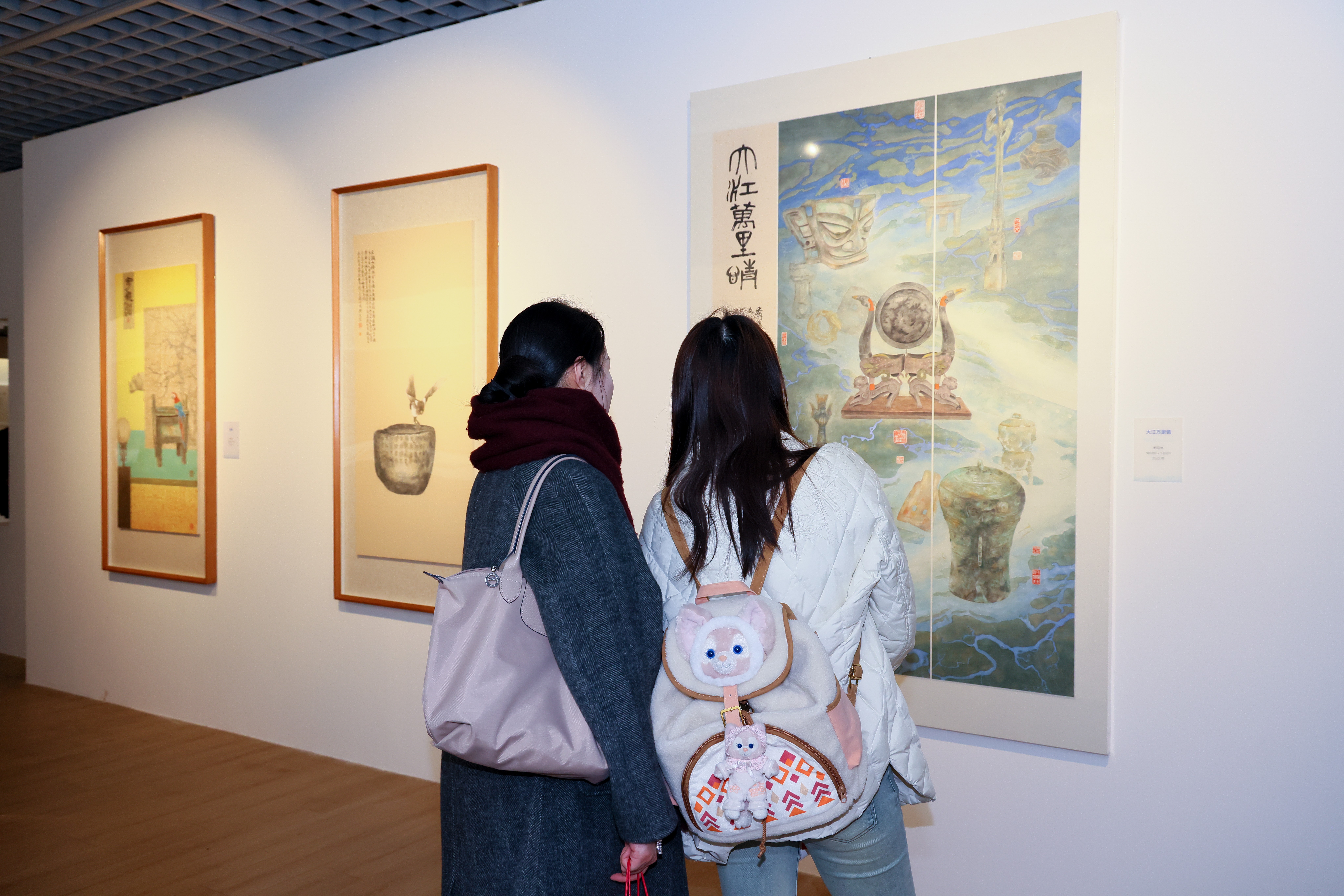 四是艺术价值。这是一次绘画艺术展,汇聚了6位江苏老中青书画英才。其中,有老艺术家,也有中年艺术骨干,更有崭露头角的艺术新锐,他们有着科班的艺术背景,取得了不俗的艺术成绩,可见这个展览的艺术性一定不低。然而,我为什么不先介绍这次展览的艺术性,将其放在最后?因为真正的艺术其价值一定在艺术之外,超出艺术价值或者令人淡化、甚至忘记其艺术价值的艺术才是最高的艺术,这在艺术史上是有很多先例的,在这里不加赘述。我们清楚地看到,该项目从一开始策划就确定了它不仅仅是一个绘画活动,也不仅仅是一个艺术项目,它具有厚重、丰富、精彩的文化价值,或许也正是它获得艺术基金资助的重要原因之一。当然,它的艺术性也不能小觑,首先,这种创意就我的认知来看属于首创,它将艺术、历史和科学贯穿起来,具有了立体的文化价值。其次,在中国绘画创作种类上如山水、花鸟、鱼虫、人物等,拓展了以文物为表现对象的新题材,从而在创作手法如文物的造型、纹饰镌刻、色彩融合等方面都有着新的挑战和创新的探索,为中国画的创作开辟了一条新路。不管是工笔还是写意抑或兼工带写,都表现出画家们的独特视角和艺术表现力,在尊重实物的基础上、在具象和抽象之间,都表现出艺术家深厚的功力和独特的艺术感受。还克服了没有前人作借鉴的冷僻,造型奇特多变背后的工艺复杂,以及材质器型多样等创作上的困难,创新了文物绘画独特的表现手法,是一种全新的具有探索性的再次艺术创作。