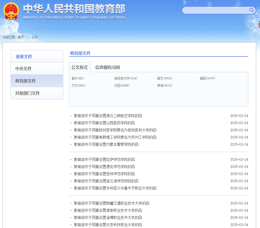 日前,教育部官网接连发布多份名为“关于同意设置**大学/学院的函”的文件。据统计,共有15所专科高职院校正式升格为本科层次院校。
