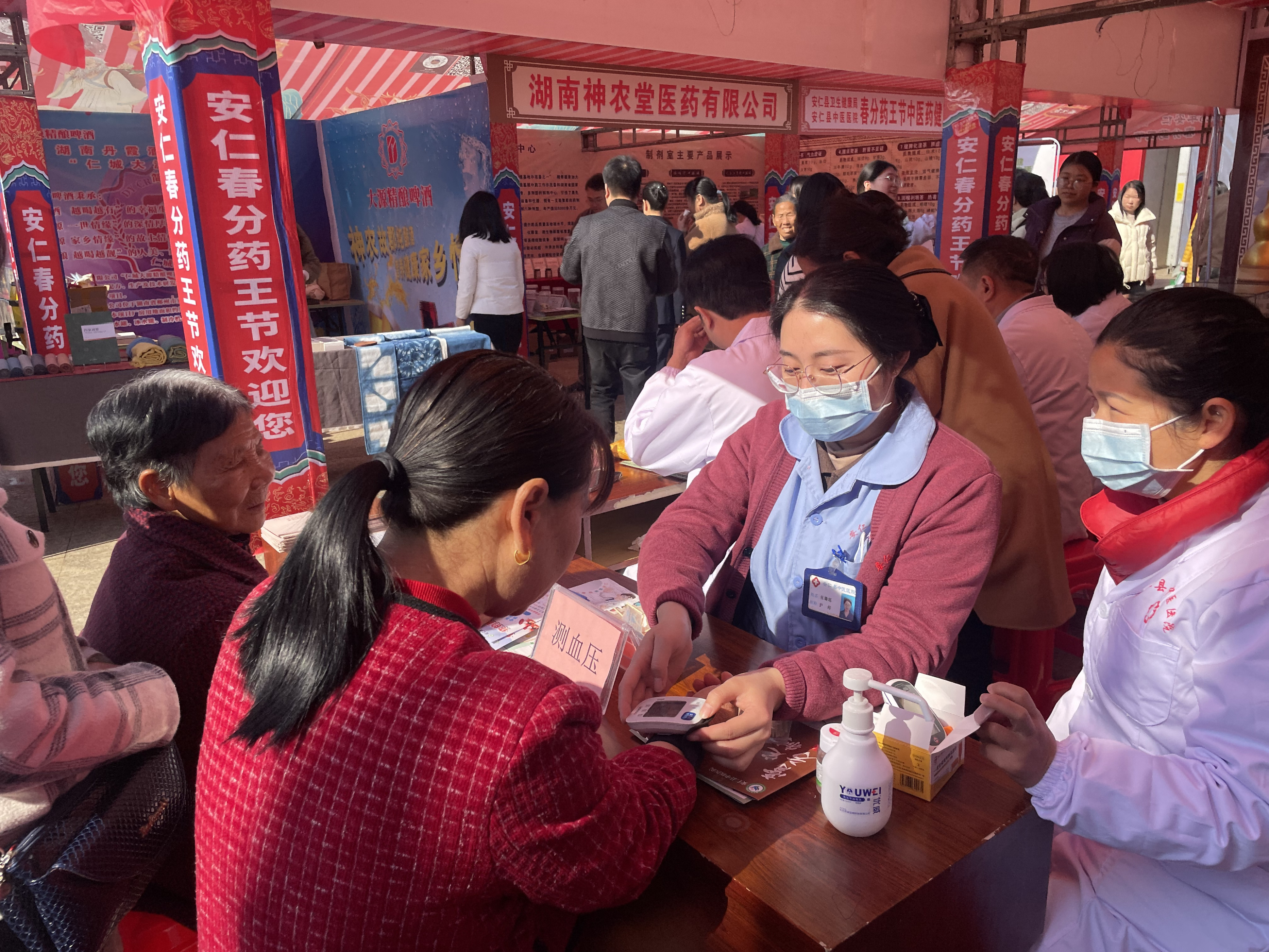 “阿姨,刚才我们为您做健康检查时,发现您的血压和血糖都有点偏高!您今后要注意清淡饮食,做菜少放盐、油,不吃糖分多的食物”3月18日,湖南省安仁县“赶分社”健康宣传义诊服务现场人声鼎沸,该县健康服务队忙碌着为群众提供健康咨询和诊疗服务。