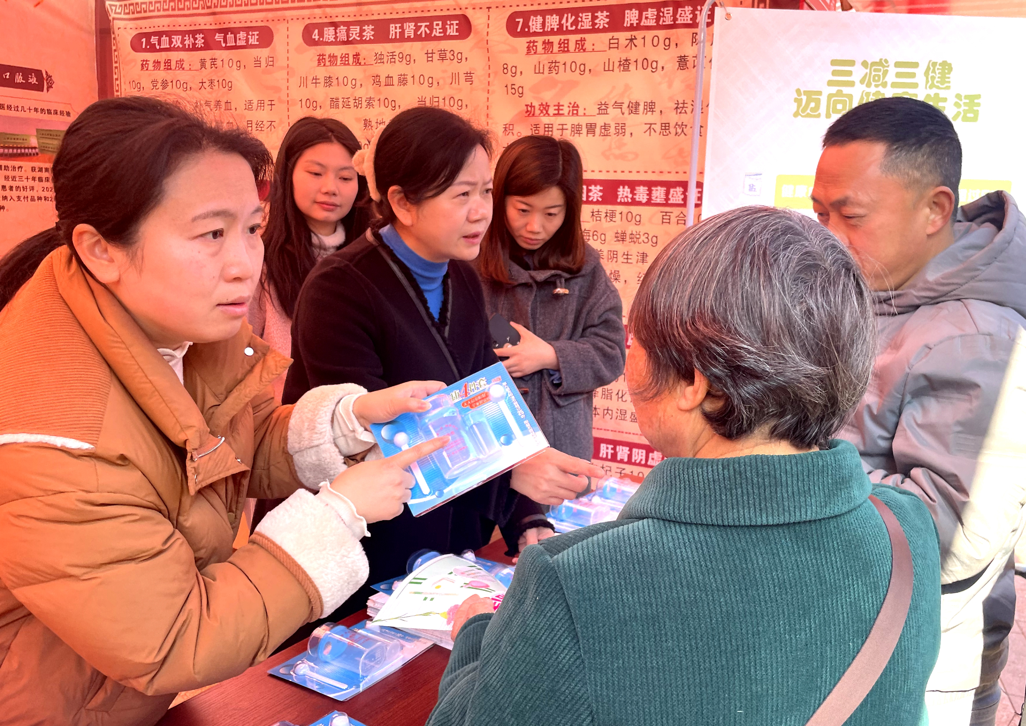 为进一步弘扬健康生活新风尚,连日来,安仁县以“非遗文化”搭台,实行线上平台+线下活动+专家讲座“三力并发”,深入宣传“三减三健”等健康科普知识,精心订制控油壶和控盐勺“健康四件宝”2万套,印制“三减三健”健康宣传资料5万份,组织健康服务队进乡村、进社区、进家庭,免费发放给广大群众,在全县营造“减盐减油、健康生活”的浓厚宣传氛围,着力引导群众养成健康生活方式。