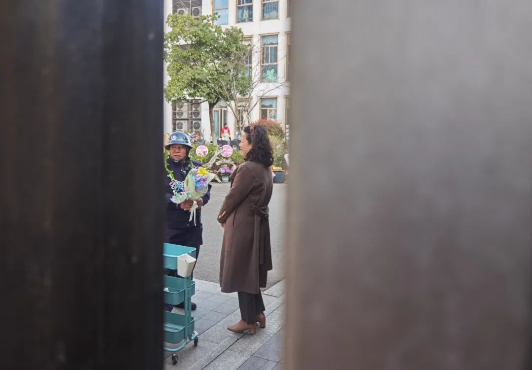 上午8点半以后,幼儿园门口的人流、车流渐渐散去。孩子们知道他要退休了,特意送来了手捧花。