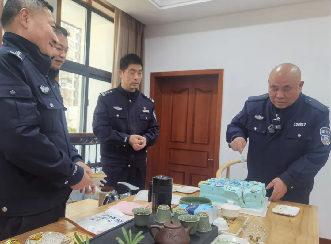 洪塘派出所的同事们给陈国华准备了蛋糕。