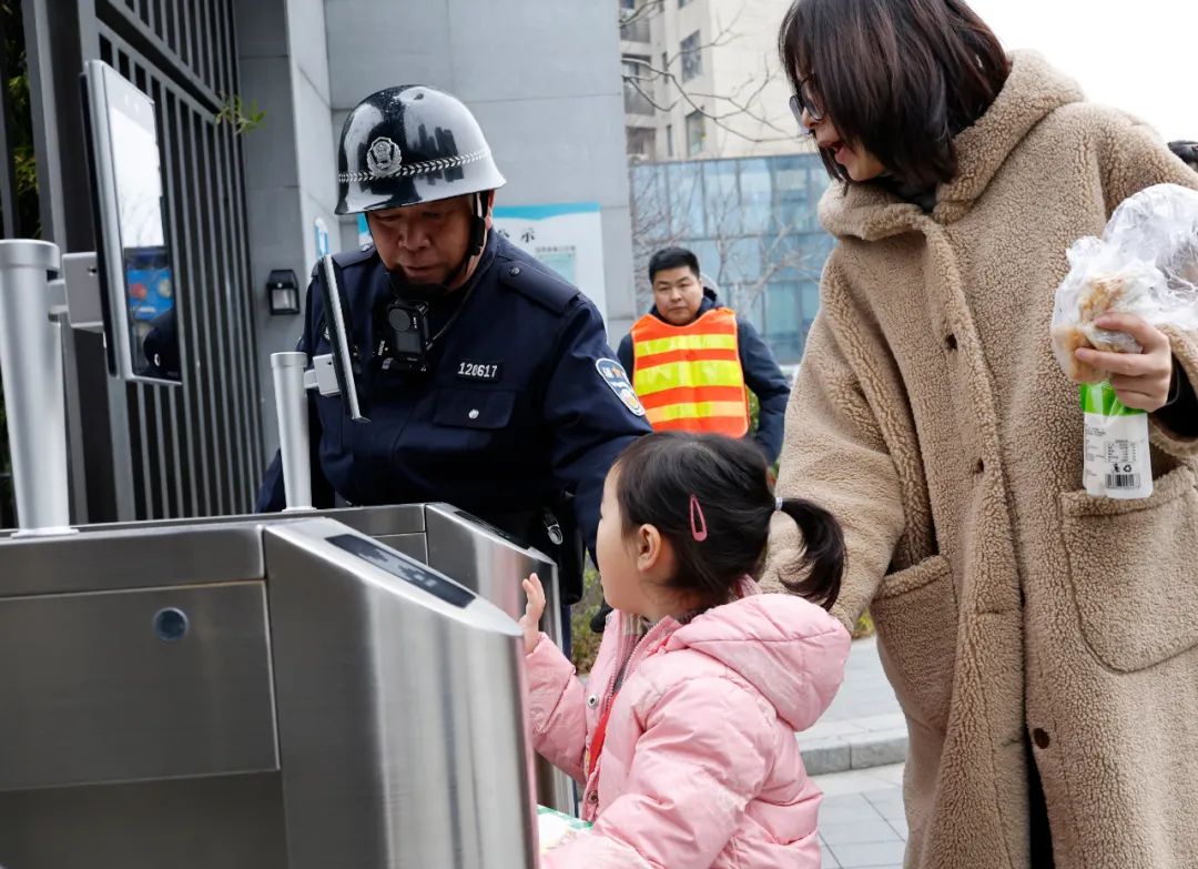 车流高峰期,他会让同事守在校门口处,自己走到马路对面,牵着独自上学的孩子一起过马路。他有经验:“孩子小,有时候走到马路中间会突然想起什么转头就跑,所以千万不能‘站死岗’,一定要带着孩子一起过马路。”