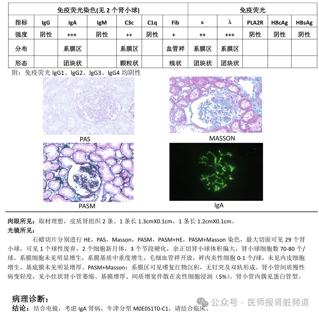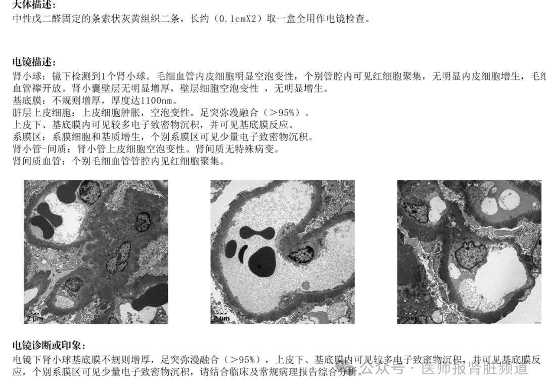 附:肾穿刺病理报告实例(光镜+免疫荧光+电镜)