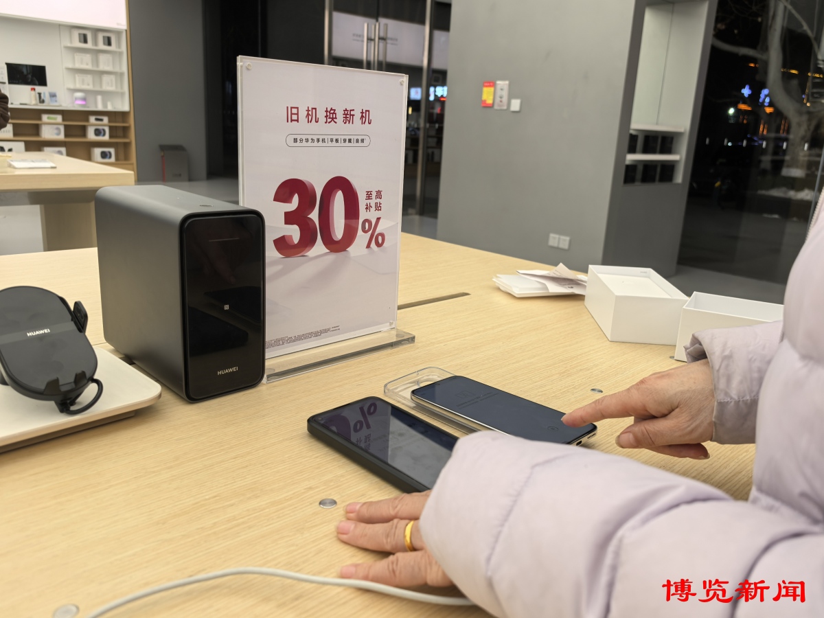 最后,在店员的推荐下,陈晓艺选择了一款最新型号的智能手机,电池容量大、屏幕大,适合老年人使用,并用母亲的旧手机参与了“以旧换新”活动,还享受到了“国补”政策的优惠,一共省了600元。