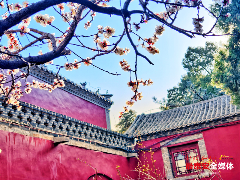泰山红门宫:红墙映杏雪 古刹绘春韵