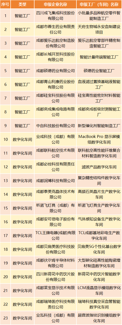 近日,成都市经信局正式公布了全市范围内入选的智能工厂和数字化车间名单,成都高新区23家企业上榜。