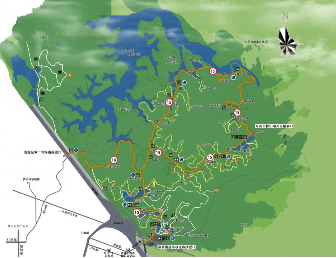罗田森林公园位于宝安区燕罗街道,地处深莞交界,跨越宝安、光明和东莞,占地面积576.39公顷,是深圳市唯一一个省级森林公园,同时也是深圳市远足径起点。罗田森林公园通过建设完善的骑行基础设施,将省2号区域绿道及深圳市远足径贯通,衔接山海连城框架,让市民游客全面游览公园,纵享“山、水、林、田、湖、野趣”的自然之美和骑行之乐。