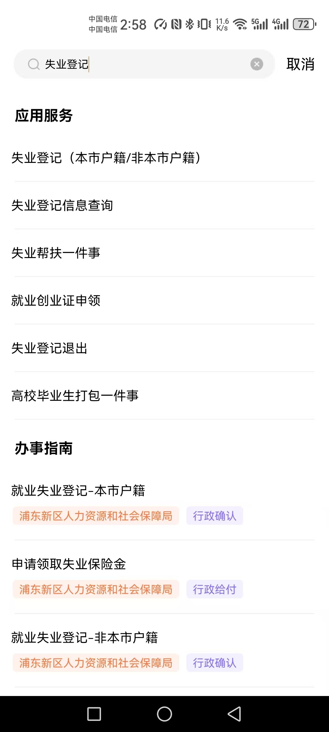 首先,我们要进入“随申办”的平台,在主页顶端搜索栏输入“失业登记“。