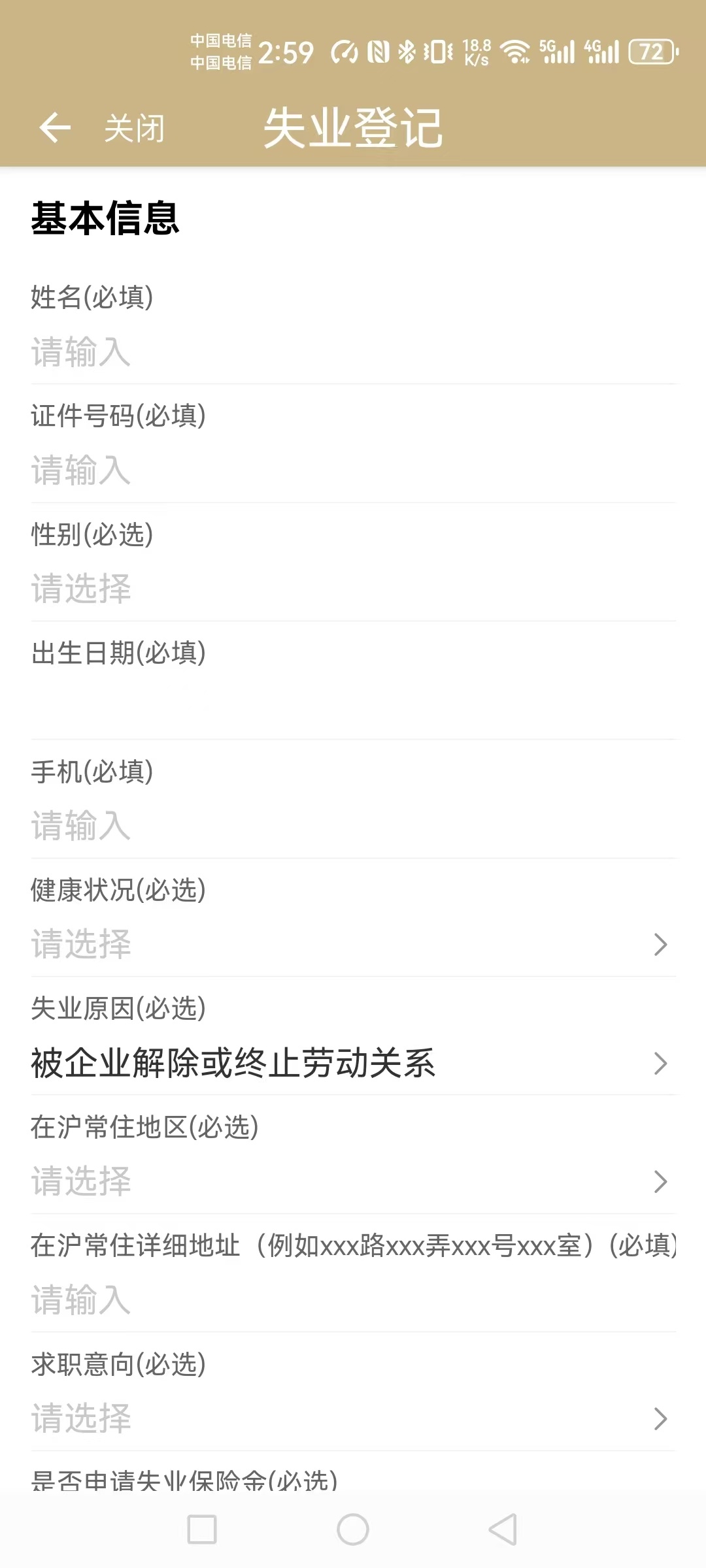 接下来,选择“本市户籍失业登记“或”非本市户籍失业登记”。