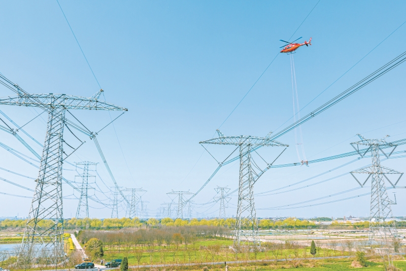 国网浙江湖州供电公司联合国网电力空间技术有限公司对±800千伏特高压锦苏线开展直升机带电检修。