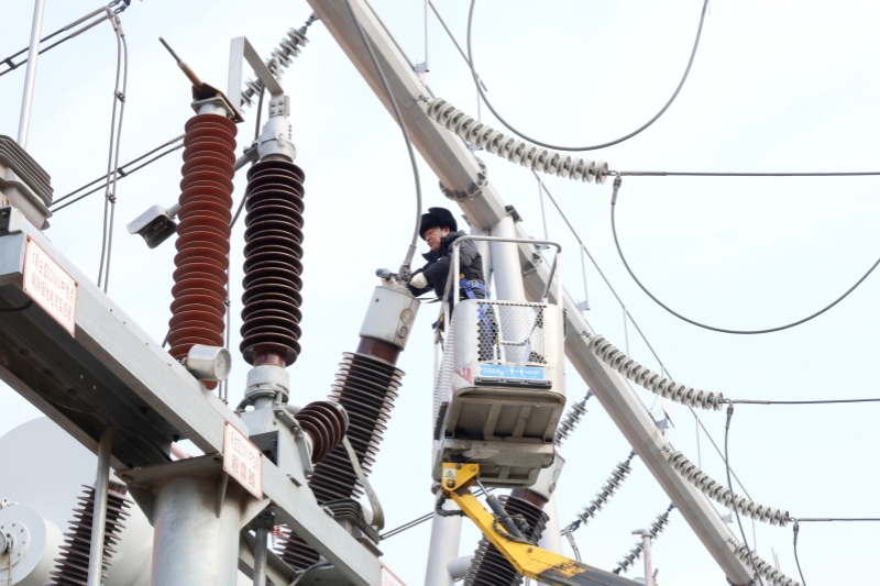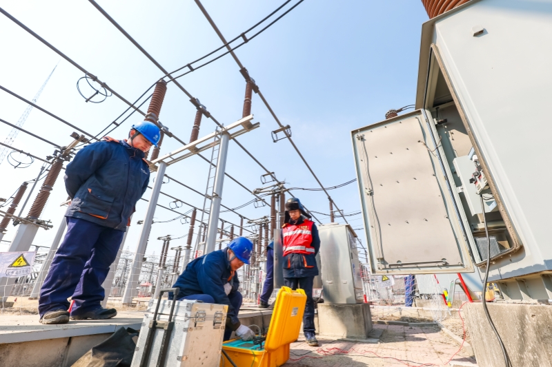 国网江苏宿迁供电公司员工在220千伏陆集变电站进行设备消缺工作。