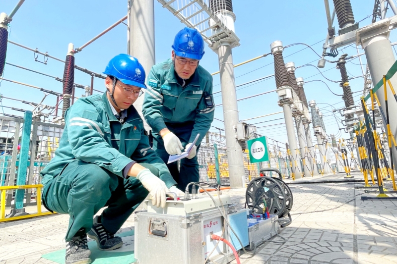 国网宁夏超高压公司员工开展750千伏妙岭变电站春季检修。