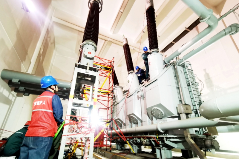 国网河南超高压公司员工在500千伏香山变电站开展主变压器返厂检修相关作业。