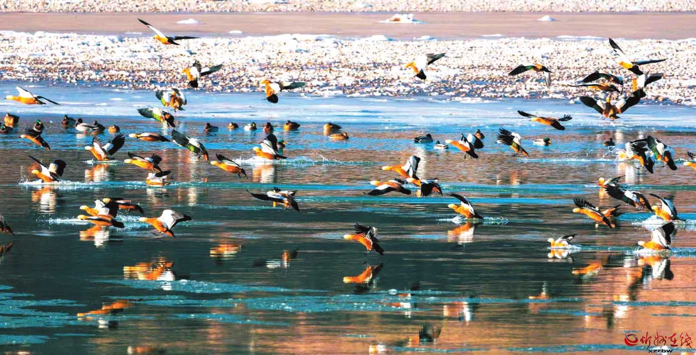 天鹅和野鸭栖息在黄河沿线 王春梅 摄