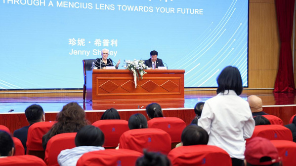 珍妮女士的此次报告会旨在通过对孟子思想的深度解读,呼吁人们在现代社会中践行仁政理念和民本思想。孟子的道德哲学不仅是中国古代智慧的结晶,更是解决当下世界社会问题、推动和谐发展的思想资源。她希望广大师生通过继承和发扬孟子的思想精髓,不仅可以更好地面对未来社会挑战,实现个人与社会的双重提升,而且还能积极参与国际交流,推动不同文化之间的对话与理解,为构建更加和谐的全球社会贡献力量。