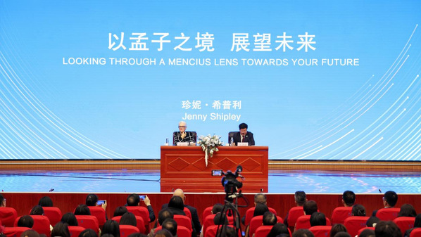珍妮·希普利以孟子思想为切入点,结合自身从政经历与国际视野,深入探讨了儒家思想在现代领导力、全球治理及人工智能伦理中的现实意义。她认为,孟子的“仁政”与“中庸之道”等思想对当代社会具有深远的启示意义。这些见解、思想和智慧源自早期文明中极为古老的一个时期,这提醒我们,每个人在社会中都肩负着一定的领导责任。