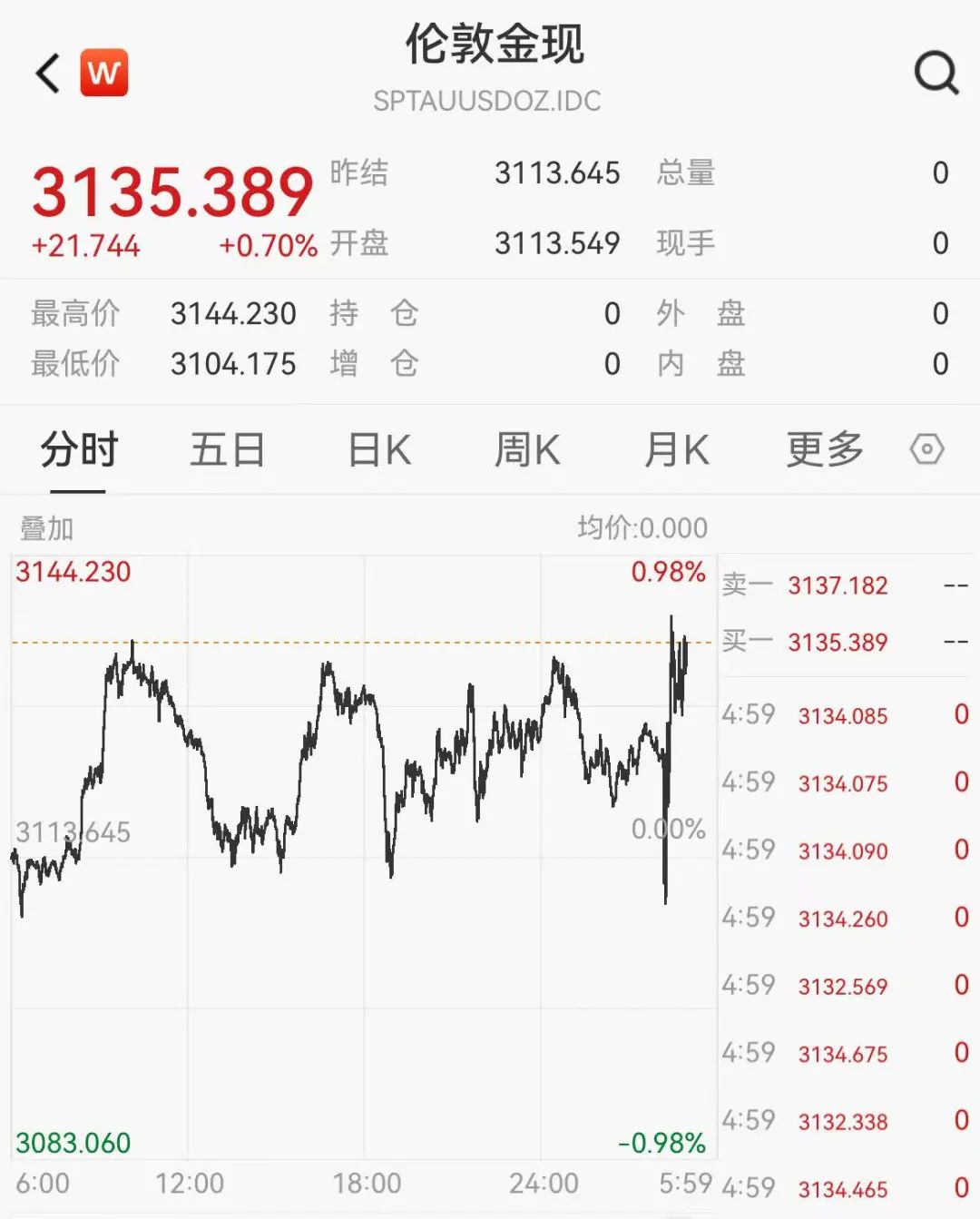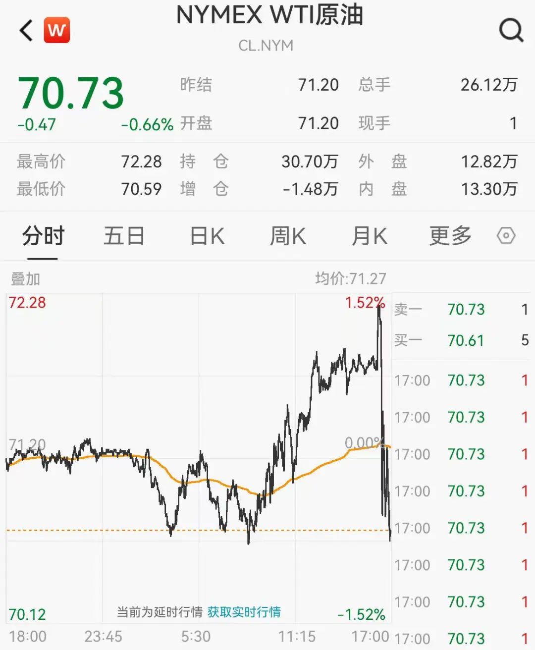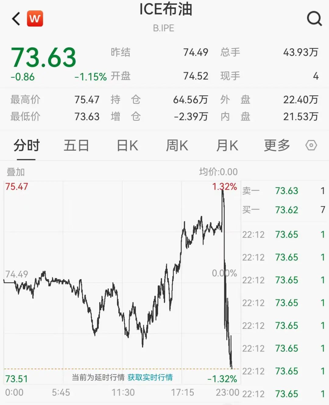 国际油价盘中直线跳水,ICE布油、美油均转跌,分别收跌1.15%、0.66%。国际金价盘中拉升,COMEX黄金涨1.41%,伦敦金现涨0.7%。
