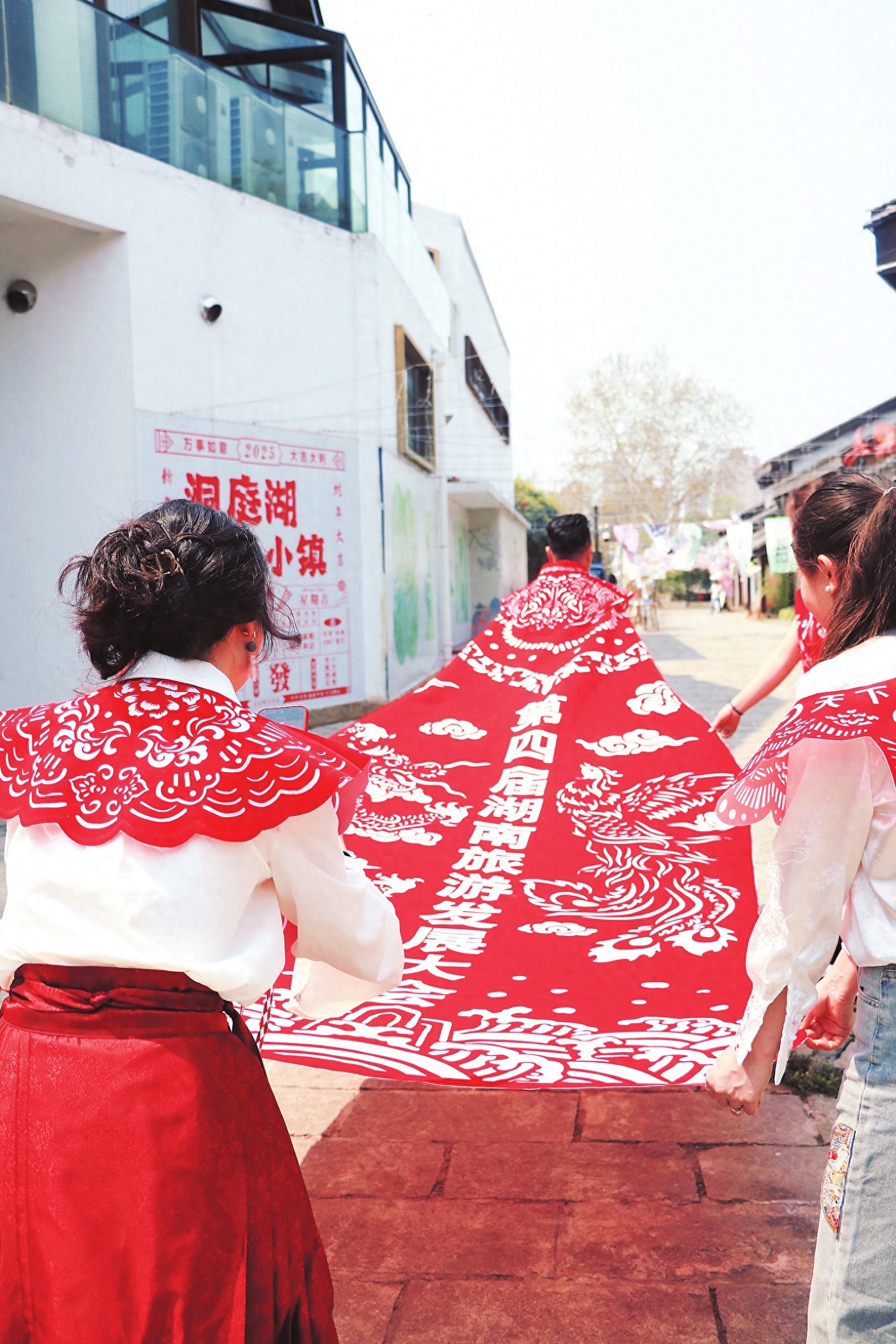 “剪纸不仅是技艺传承,更是文化表达。”彭兵介绍,这幅作品从构思设计到制作完成用了一个多月时间,采用带背胶绒布材料、衬白绸布为底,再以服饰制作方法,裁剪成披风样式,全程手工制作,融合了剪纸与服装双重技艺。希望通过这幅作品让更多人看到岳州剪纸的当代生命力,推动非遗走进现代生活。