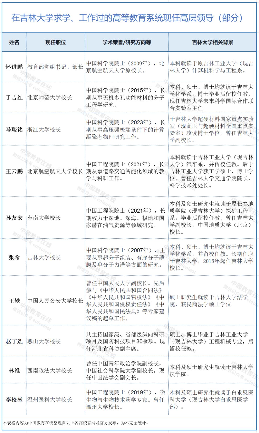 实际上,中国高校的高层领导中,曾在吉林大学求学或工作过的“吉大人”有不少,展现出了令人瞩目的"吉大现象"。