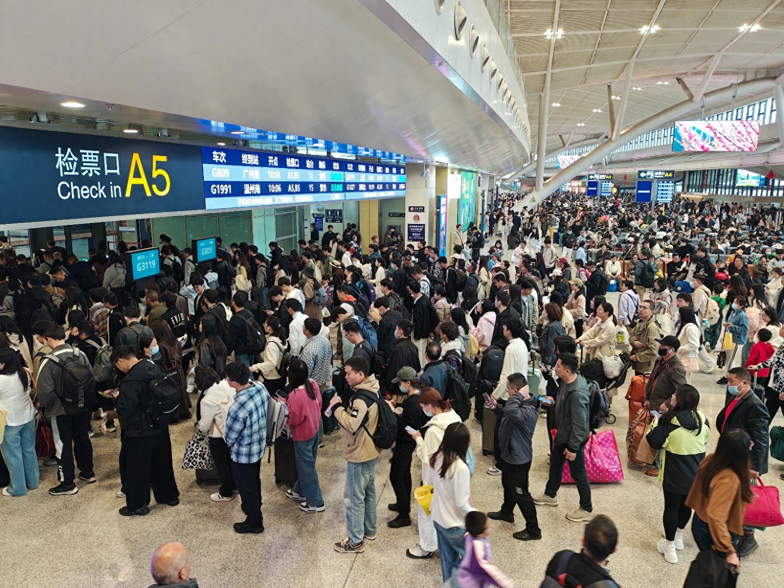 清明假期首日,武汉站迎来客流高峰。 通讯员覃凯 摄