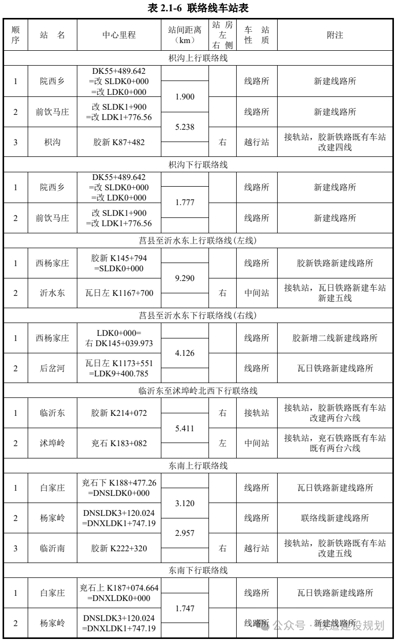 新建枳沟联络线、莒县至沂水东联络线、临沂东至沭埠岭北西联络线、兖石线至胶新线东南联络线,合计长度约33.923km。
