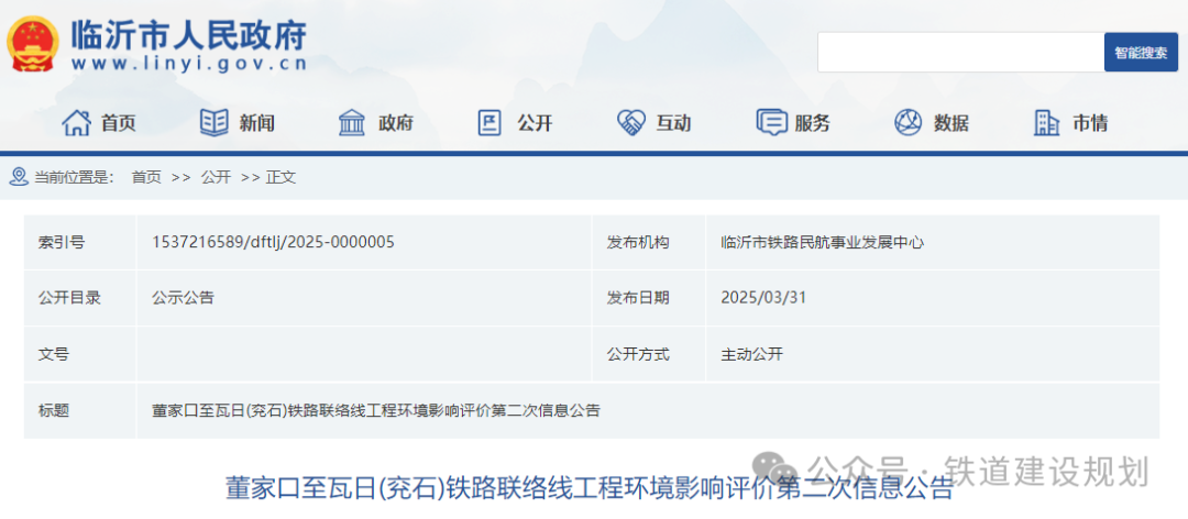 近日,董家口至瓦日(兖石)铁路联络线工程环境影响评价第二次信息公告在项目沿线政府网站开始公示,公示期为10个工作日,项目环评报告即将进入批复阶段,将争取在年内开工建设。
