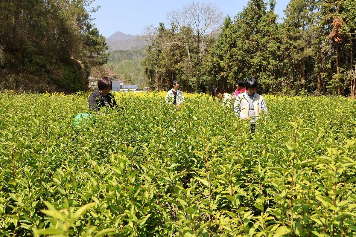 像潘敏、李谷红这样“农闲务工、茶季采茶”的村民茶园里有150余人,小茶叶变身“黄金叶”,让村民实现家门口就业增收。